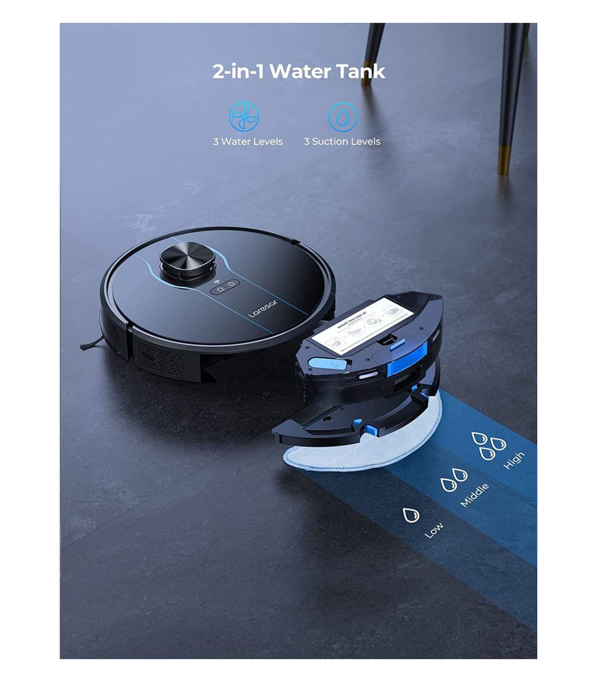 جاروبرقی رباتیک Laresar L6 Nex با قابلیت تخلیه خوکار می‌تواند همه کارها را انجام دهد و و حتی بهتر از دیگر دستگاه ها. این ربات ۴ در ۱ دارای قابلیت‌های جارو کردن، جاروبرقی کشیدن، تی کشیدن و خالی کردن همه چیز به طور همزمان است! محفظه گرد و غبار ۳۰۰ میلی‌لیتری و مخزن آب ۲۵۰ میلی‌لیتری امکان تمیز کردن بی‌نقص را فراهم می‌کنند، در حالی که مکش قابل تنظیم در ۳ سطح و سطح آب در ۳ سطح به شما امکان می‌دهد تمیزی ایده‌آل را برای هر نوع کفی تنظیم کنید. این ربات تی‌شو از تی Y شکل پشتیبانی می‌کند که از تی کشیدن دستی تقلید می‌کند و در نتیجه پس از آن کف تمیزتری خواهید داشت.