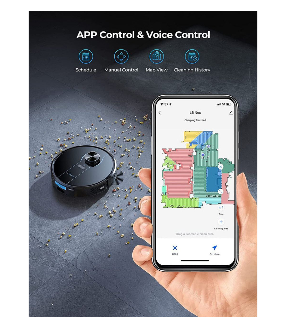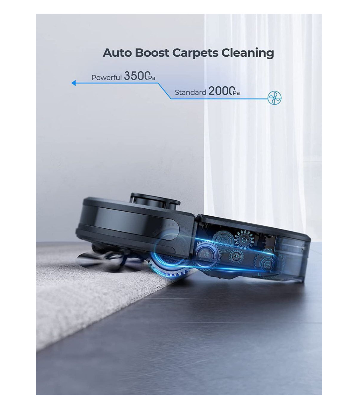 سیستم تشخیص هوشمند در جاروبرقی رباتیک L6 Nex در هنگام قرار گیری روی فرش و موکت می تواند به طور خودکار قدرت مکش را روی حداکثر توان تنظیم می‌کند تا کثیفی‌های عمیق، موی حیوانات خانگی و سایر زباله‌هایی را که ربات‌ها نمی‌توانند پاک کنند، از بین ببرد. اگر فرشی با دبی جریان بالا دارید، توصیه می‌کنیم ناحیه فرش را به عنوان منطقه ممنوعه تنظیم کنید.