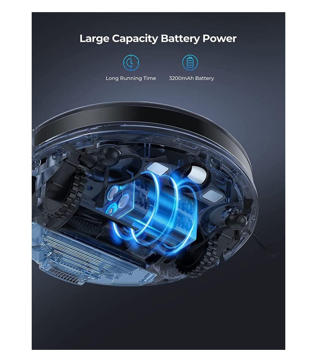 جاروبرقی رباتیک Laresar L6 Nex شارژی است و محدودیتی از نظر وجود سیم در هنگام کار ندارد.این جاروبرقی رباتیک مجهز به یک باتری با ظرفیت بالا ۳۲۰۰ میلی‌آمپر ساعت است که می‌تواند تا ۱۸۰ دقیقه به طور مداوم خانه شما را تمیز کند (عمر باتری به قدرت مکش بستگی دارد، در قدرت مکش بالا عمر باتری کاهش می‌یابد). هنگامی که قدرت باتری به ۱۵٪ کاهش می‌یابد، جاروبرقی رباتیک به طور خودکار برای شارژ مجدد به ایستگاه شارژ برمی‌گردد و از جایی که دفعه قبل متوقف شده بود، به جارو کردن و تی کشیدن ادامه می‌دهد تا دستان شما آزاد باشد.