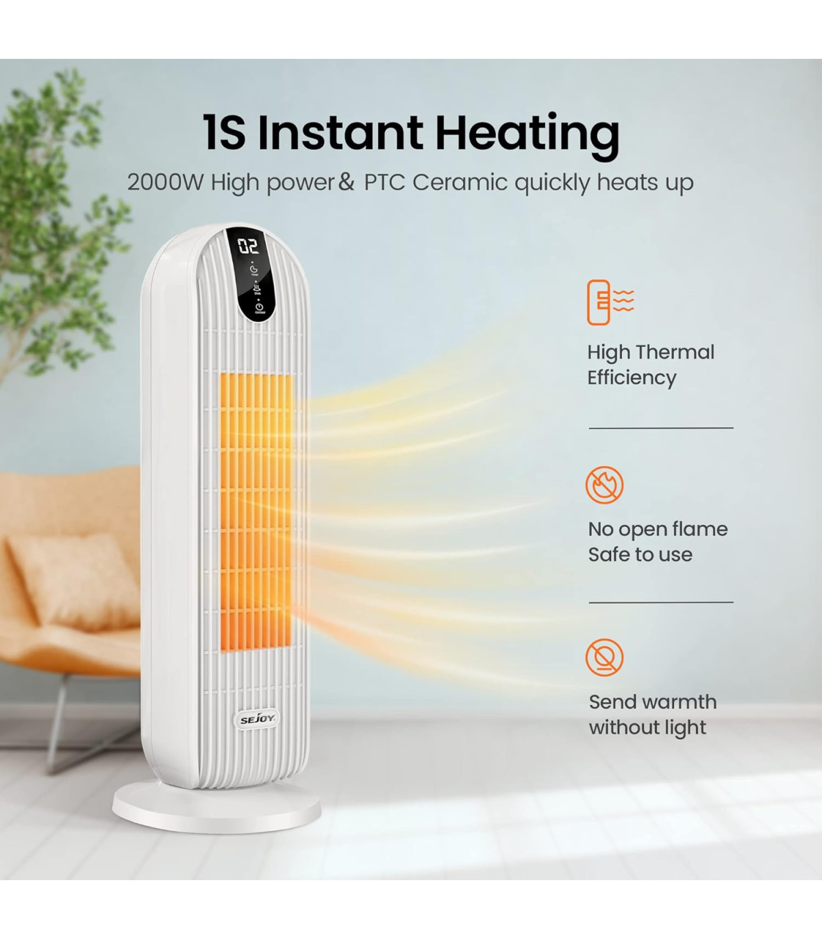 استفاده از المنت های سرامیکی PTC یکی از نکات مورد توجه در این هیتر برقی شرکت Sejoy است.این نوع از المنت ها با توجه به توان 2500 واتی دستگاه در عرض یک ثانیه داغ می شوند.مقاومت بالایی در برابر حتی رطوبت دارند و طول عمر انها نیز از المنت های سیمی بسیار بالاتر است.