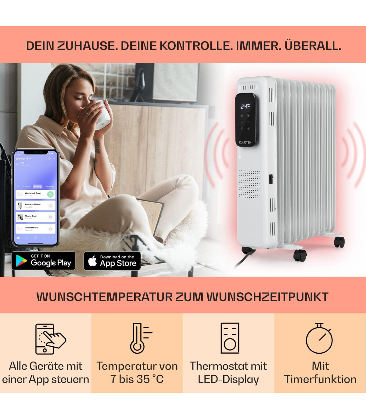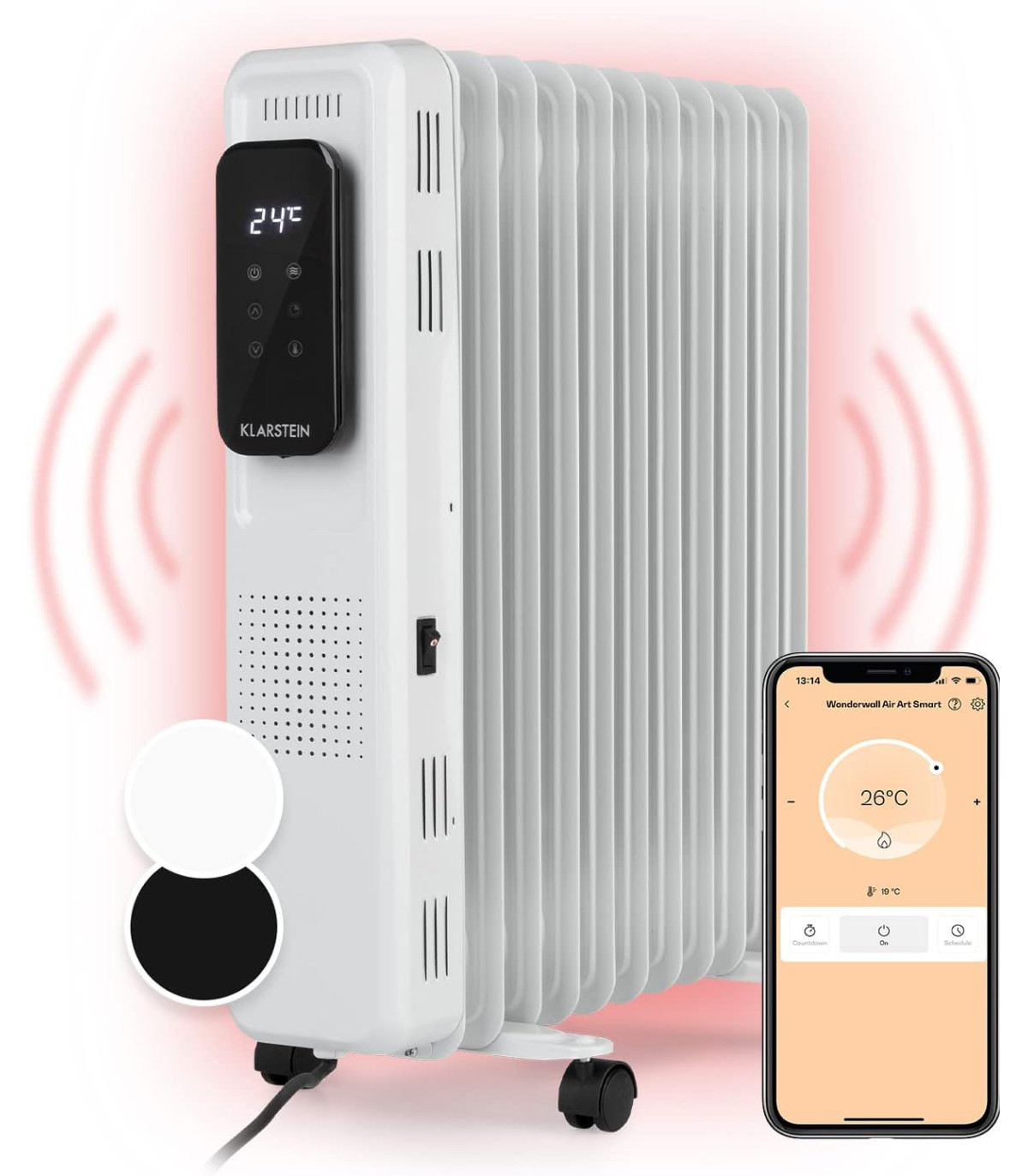 این یک قابلیت جالب و خلاقانه است که این رادیاتور برقی ما را به راحتی از طریق تلفن هوشمند خود با برنامه Klarstein از روی مبل کنترل کنید. با تایمر یکپارچه برای روشن و خاموش کردن، میتوانید دمای دلخواه خود را به راحتی و به راحتی تنظیم کنید.همه چیز به اسانی از طریق گوشی هوشمند شما تنظیم خواهد شود.