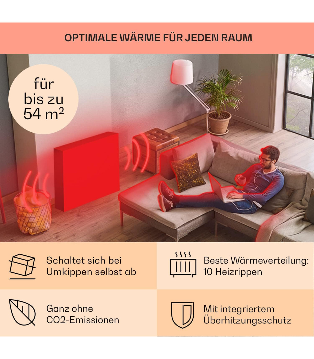 این رادیات برقی به لطف صفحات الومینیومی گرمایش کارآمد، اتاقهای بزرگ را به سرعت گرم میکند. به لطف گردش هوای بسیار بهتر، هوای اتاق به خصوص سریع گرم میشود، بنابراین در روزهای سرد از هوای مطبوع و گرم قطعا لذت خواهید برد.
